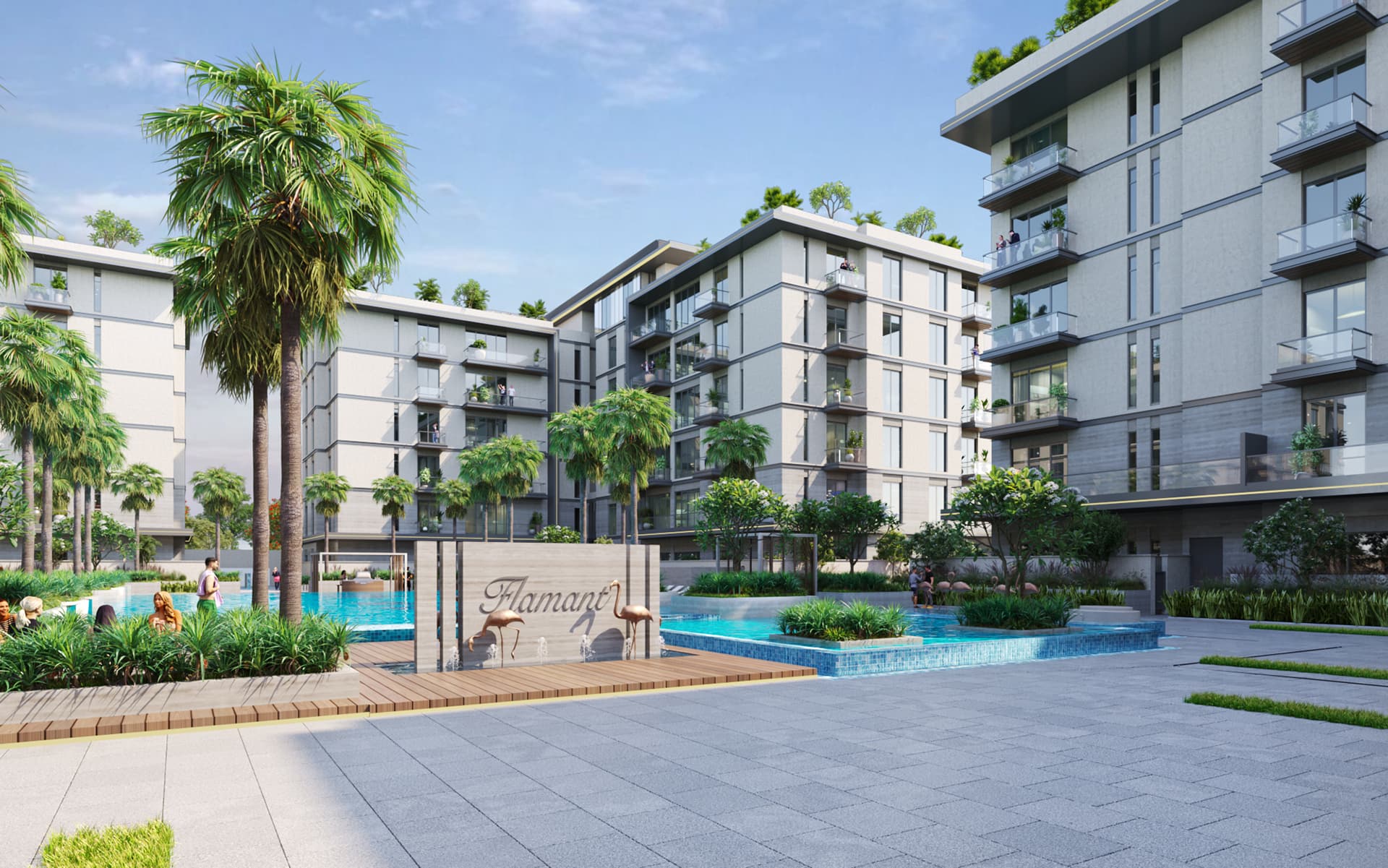 تشمل المميزات الرئيسية لمشروع فلامنت مسبحاً خارجياً، بالإضافة لنهر فلامنجو يمر بين الأبراج الأربعة، ومسبح للأطفال، ومناطق للرياضة، ومناطق طبيعية خضراء، ومناطق للجلسات العائلية، وشلال مائي.